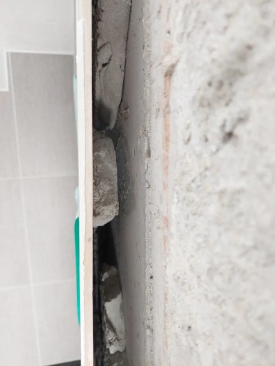 (이유는 시멘트+모래+물의 혼합비 미준수, 저질 재료 사용, 일당량을 채우기 위한 빠른 작업 (몰탈양 부족), 벽체의 먼지 및 이물질 미제거, 방수페인트(고뫄스)위에 타일 시공, 수분 흡수율이 낮은 자기질 타일 몰탈 시공 등입니다)